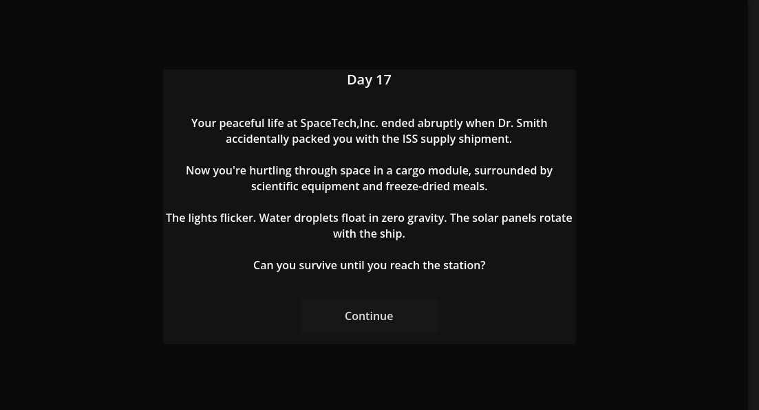 Day 17: Dr. Smith accidentally packs you with the ISS supply shipment